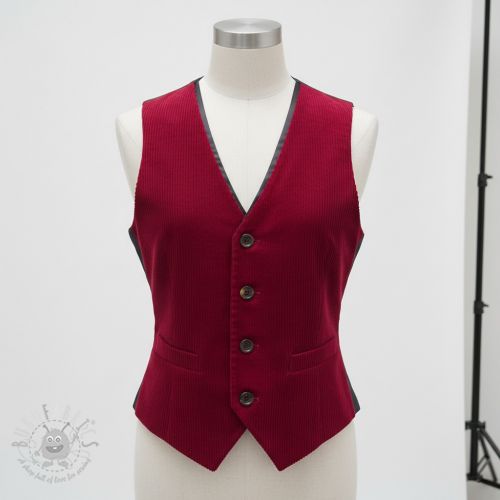 Catifea raiată 6W WASHED STRETCH dark red