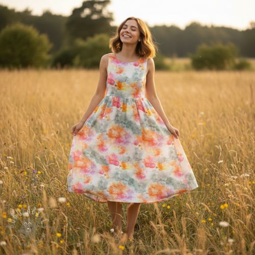 In cu bumbac Abstract flowers RAMIE orange digital print