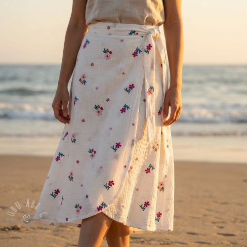 Mușelină EMBROIDERY Flowers MIA camel