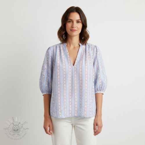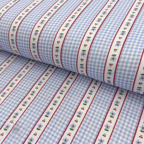 Mușelină Flowers check blue digital print