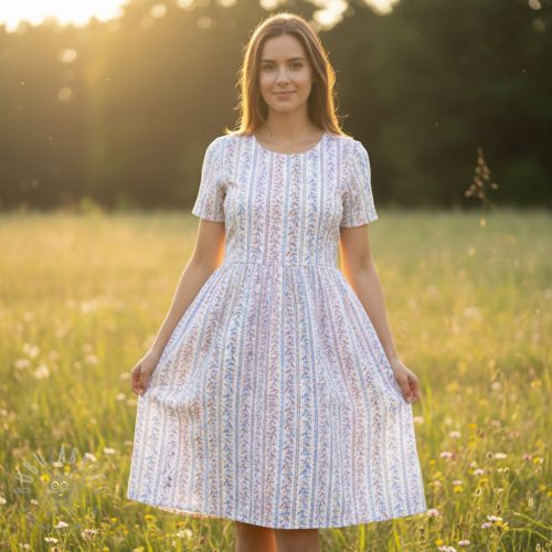 Mușelină Leaves in stripes digital print ORGANIC
