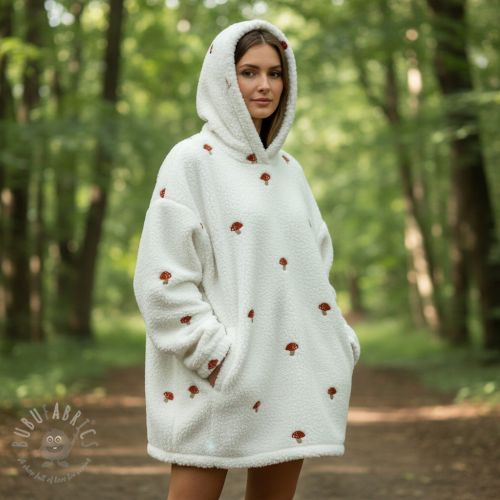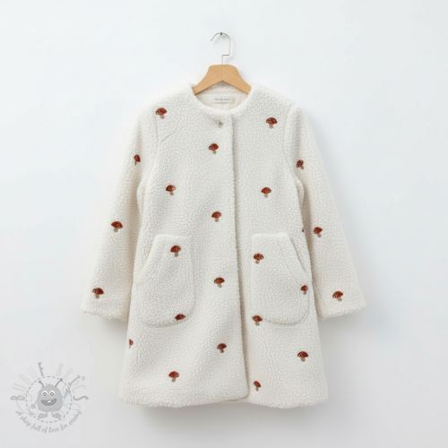 Stofă palton EMBROIDERY Little mushrooms pebble