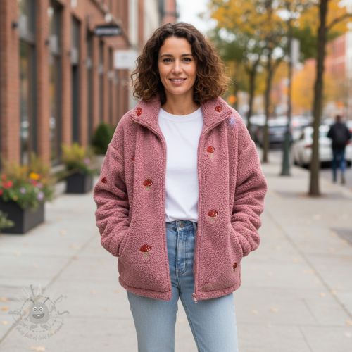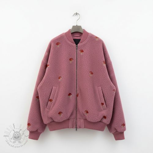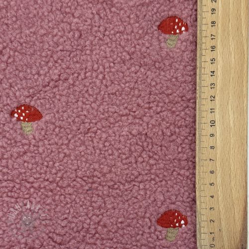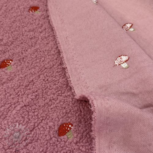 Stofă palton EMBROIDERY Little mushrooms old pink
