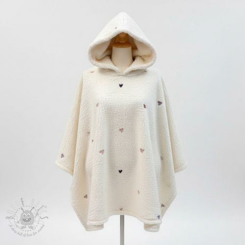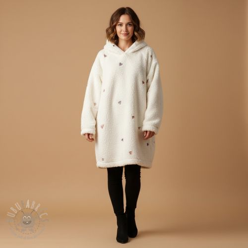 Stofă palton TEDDY EMBROIDERY Hearts ecru