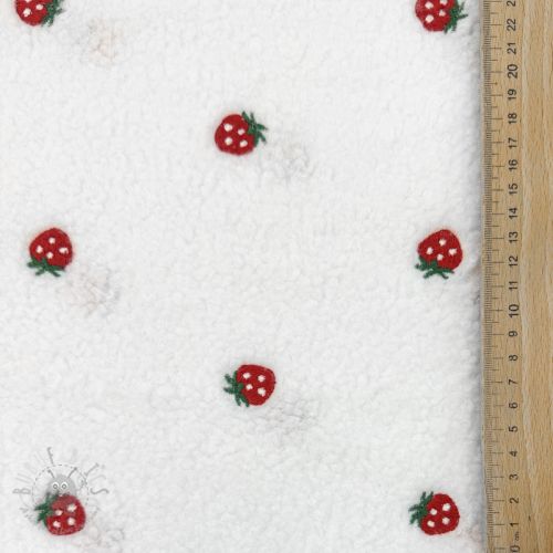 Stofă palton TEDDY EMBROIDERY Strawberries white