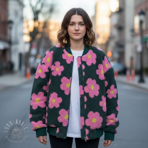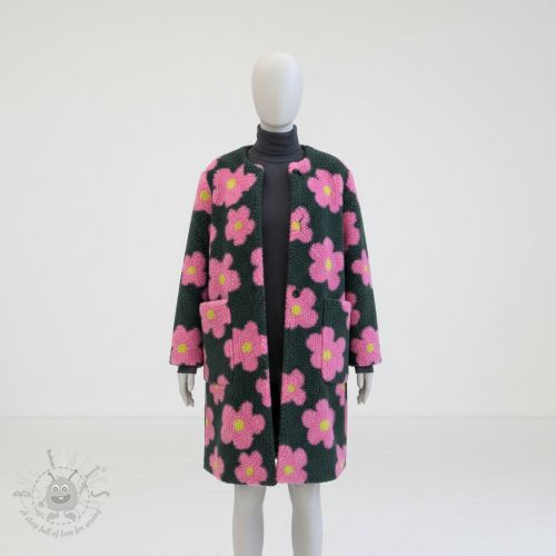 Stofă palton TEDDY JACQUARD Flowers army green/pink