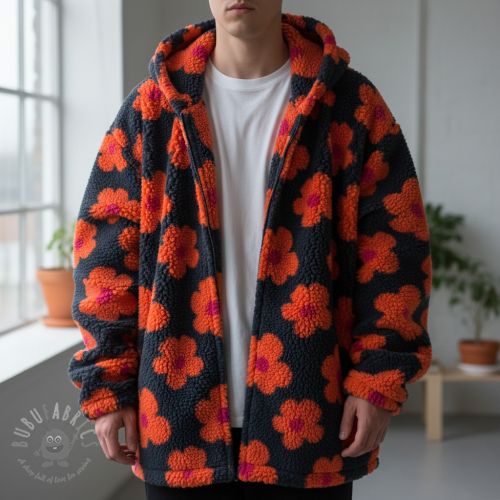 Stofă palton TEDDY JACQUARD Flowers navy