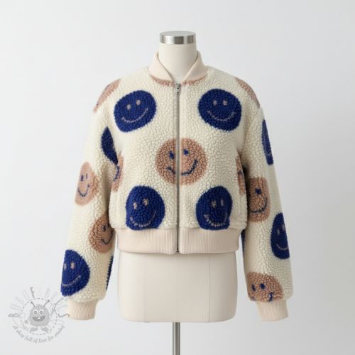 Stofă palton TEDDY JACQUARD Happy faces jeans
