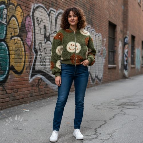 Stofă palton TEDDY JACQUARD Happy faces jeans