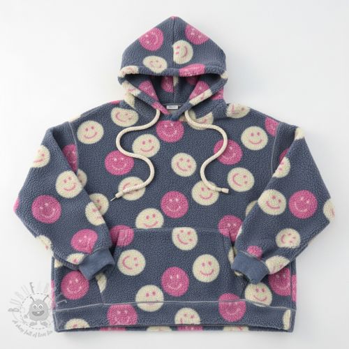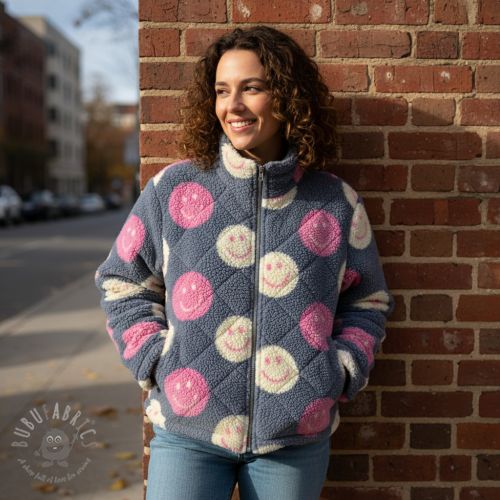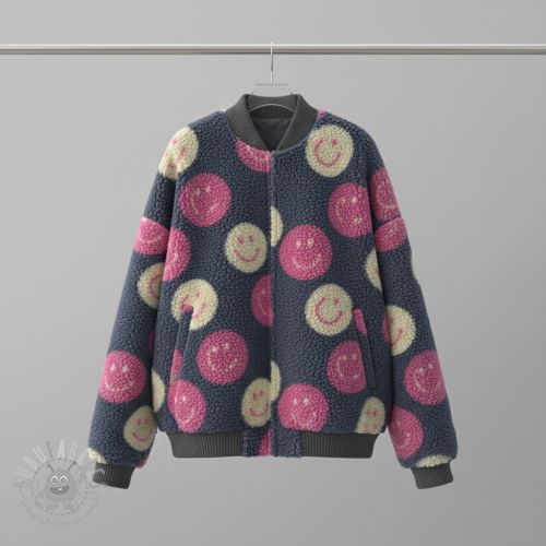 Stofă palton TEDDY JACQUARD Happy faces jeans
