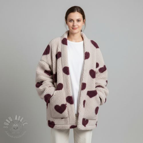 Stofă palton TEDDY JACQUARD Hearts rouge