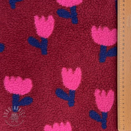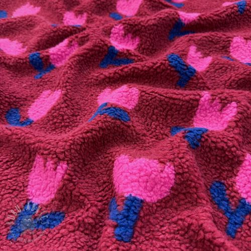 Stofă palton TEDDY JACQUARD Tulips dark red