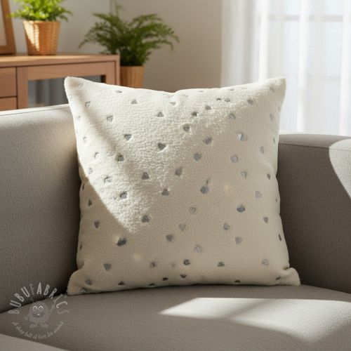 Stofă palton TEDDY Tossed hearts silver