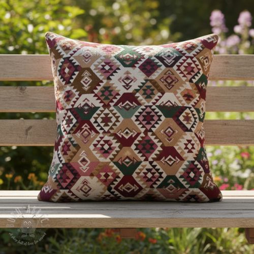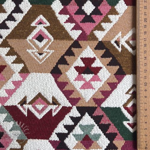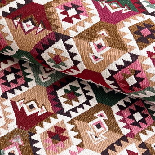 Țesătură decorativă jacquard Kilim fuchsia vert