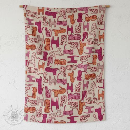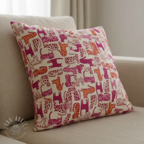 Țesătură decorativă Linenlook Cat Wildlife Art pink