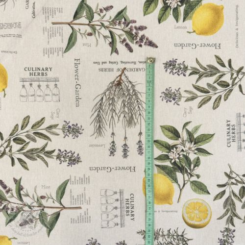 Țesătură decorativă Linenlook Lavender citrus recipe digital print