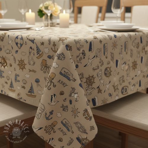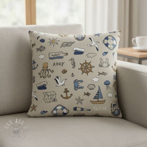 Țesătură decorativă Linenlook premium Nautical Doodle
