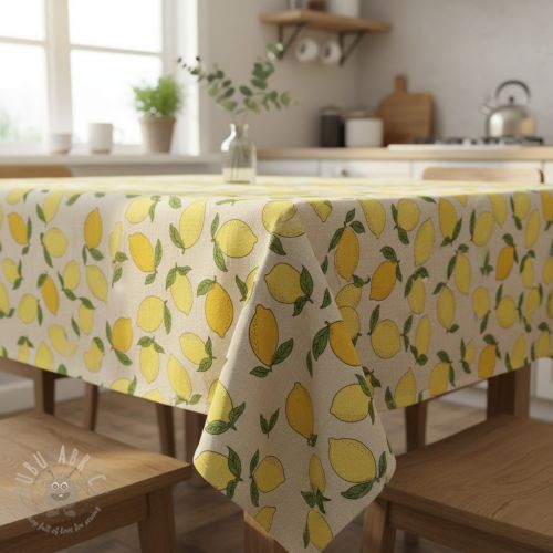 Țesătură decorativă Linenlook premium Sunny Lemon Fruit