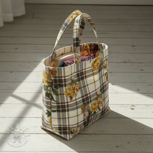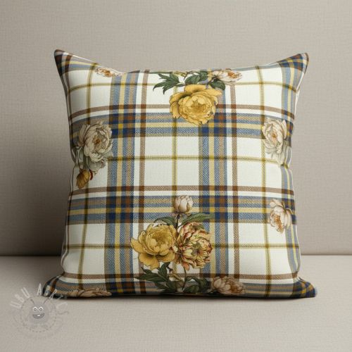 Țesătură decorativă premium Linenlook Classic Peony Check digital print