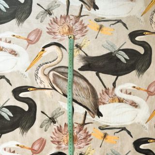 Țesătură decorativă VELVET Heron bird camel