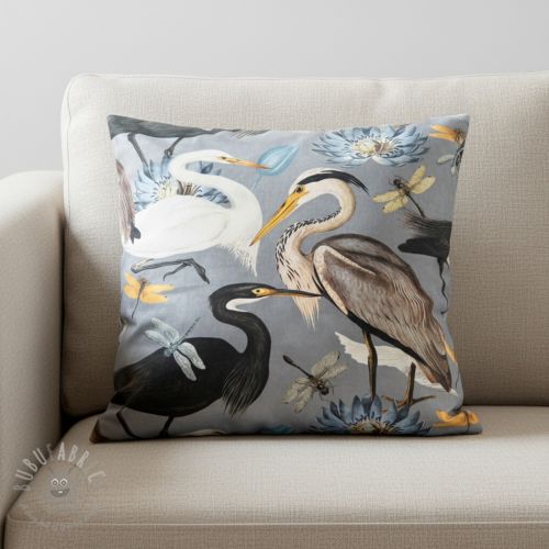 Țesătură decorativă VELVET Heron bird steel grey