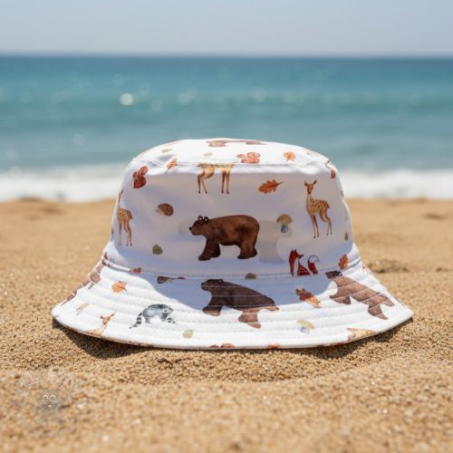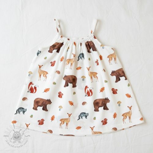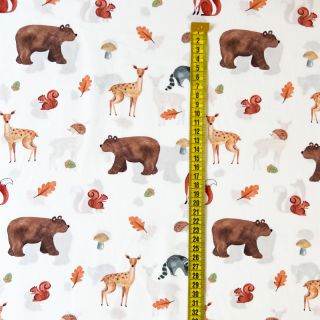 Țesătură din bumbac Animals in the wood white digital print