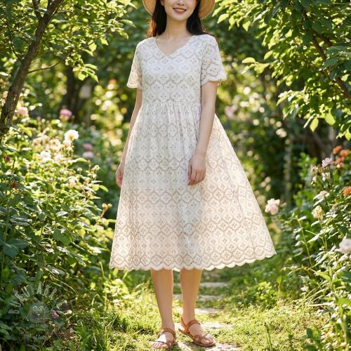Țesătură din bumbac EMBROIDERY Lilian natural