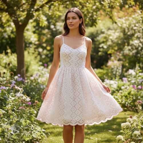 Țesătură din bumbac EMBROIDERY Lilian natural