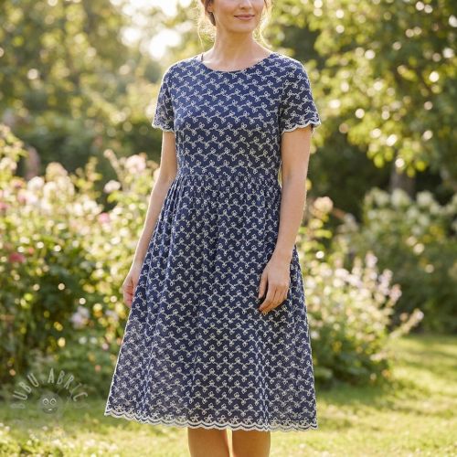 Țesătură din bumbac EMBROIDERY Rosemary navy