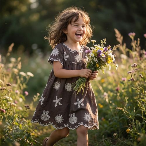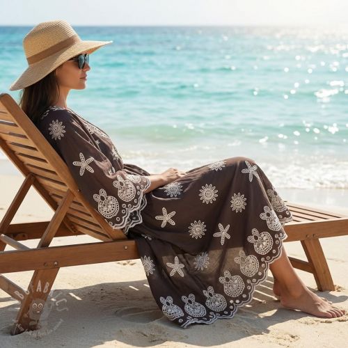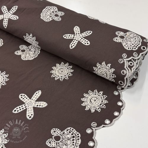 Țesătură din bumbac EMBROIDERY Sea ornaments brown