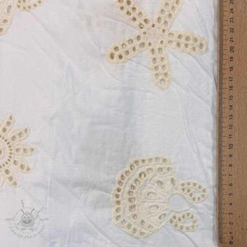Țesătură din bumbac EMBROIDERY Sea ornaments white