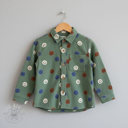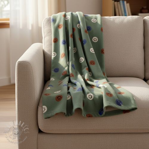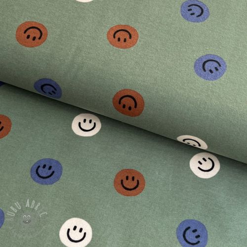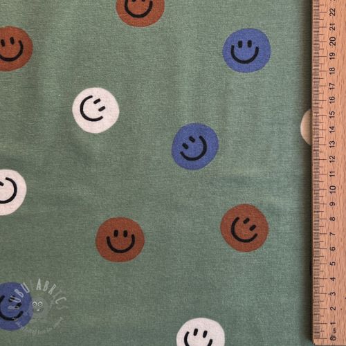 Țesătură din bumbac FLANNEL Happy faces army green