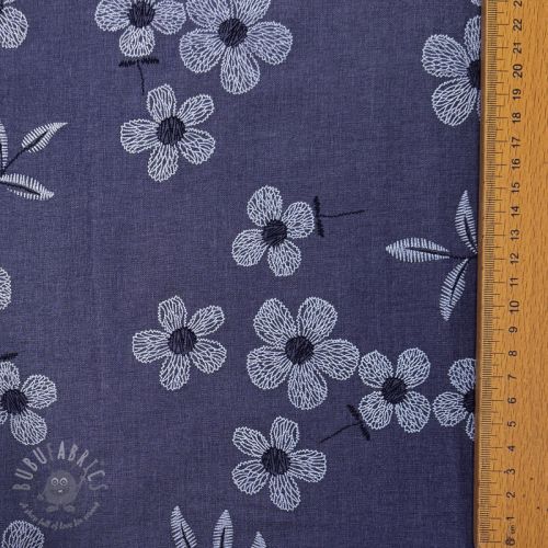 Țesătură din bumbac JEANS Chambre LUXURY JACQUARD Flowers dark blue