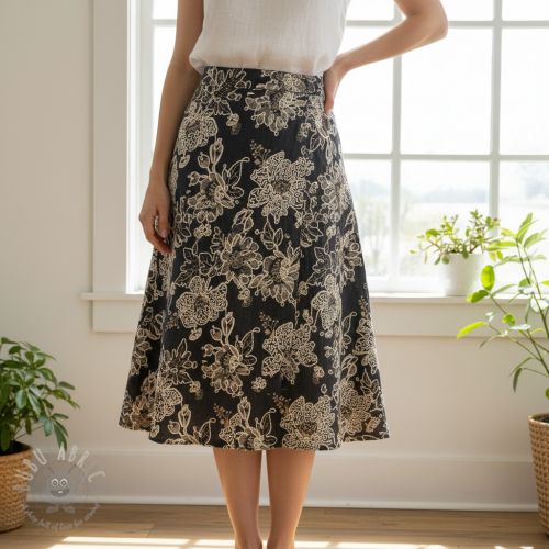 Țesătură din bumbac JEANS EMBROIDERY Bouquet black
