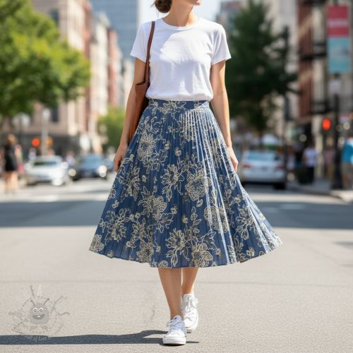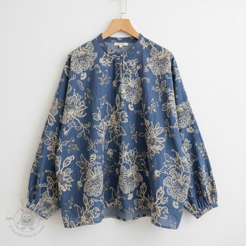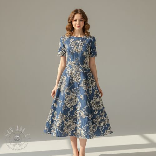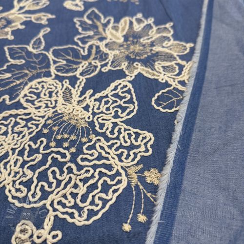 Țesătură din bumbac JEANS EMBROIDERY Bouquet blue