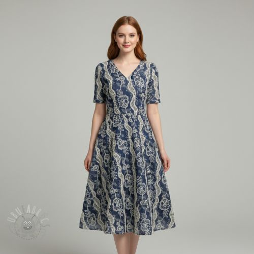 Țesătură din bumbac JEANS EMBROIDERY Flora design A