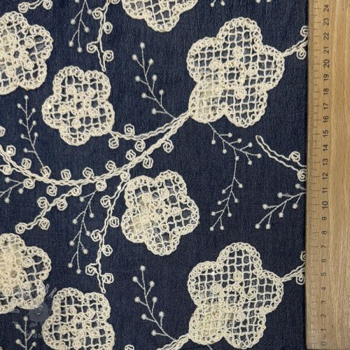 Țesătură din bumbac JEANS EMBROIDERY Flora design C
