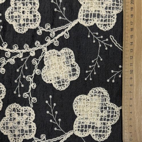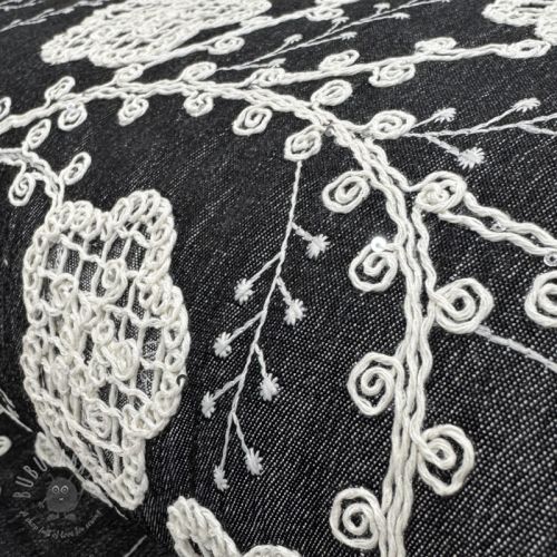 Țesătură din bumbac JEANS EMBROIDERY Flora design F