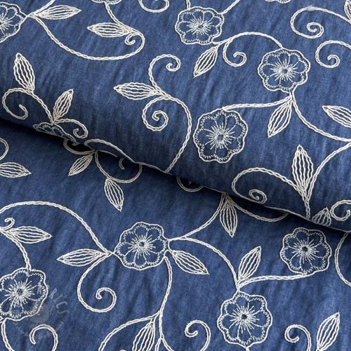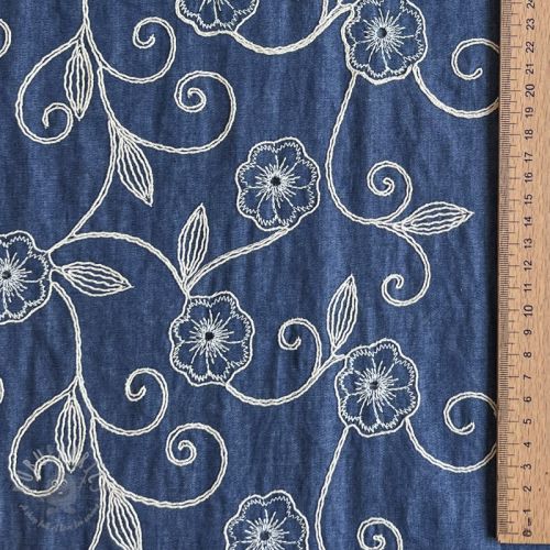 Țesătură din bumbac JEANS EMBROIDERY Flowers