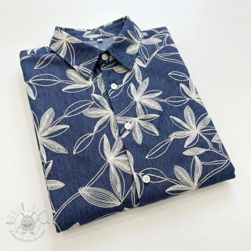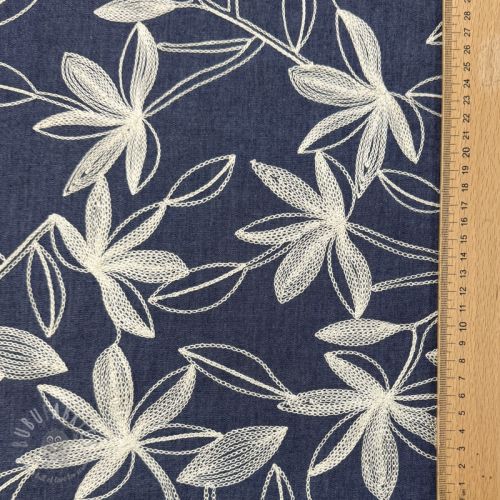 Țesătură din bumbac JEANS Embroidery Flowers white