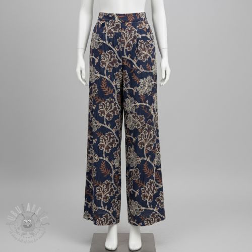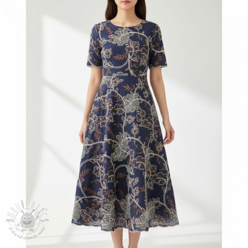 Țesătură din bumbac JEANS Embroidery leaves dark blue