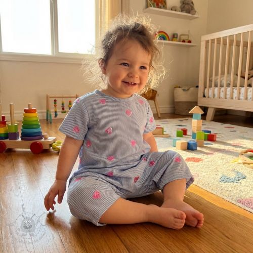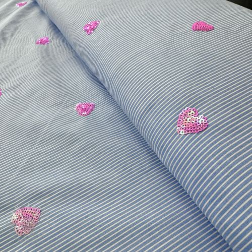 Țesătură din bumbac Stripes Sequins Hearts blue