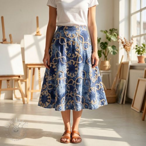 Țesătură din bumbac TIE DYE EMBROIDERY Elise tape design D
