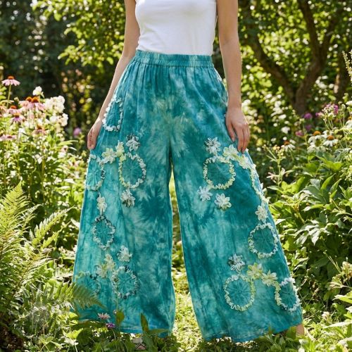 Țesătură din bumbac TIE DYE EMBROIDERY Eva tape design E