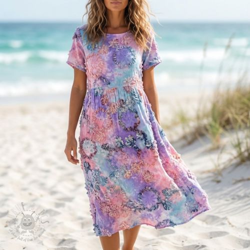 Țesătură din bumbac TIE DYE EMBROIDERY Eva tape design D