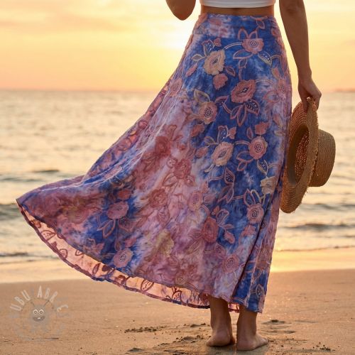 Țesătură din bumbac TIE DYE EMBROIDERY Flora design C
