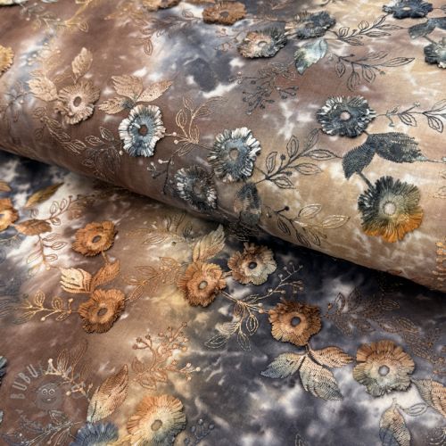 Țesătură din bumbac TIE DYE EMBROIDERY Poppy design I