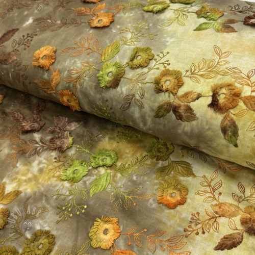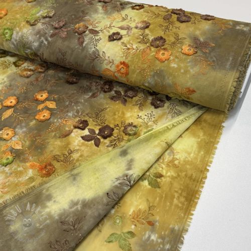 Țesătură din bumbac TIE DYE EMBROIDERY Poppy design J