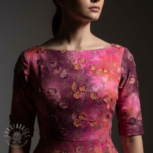 Țesătură din bumbac TIE DYE EMBROIDERY Poppy design J