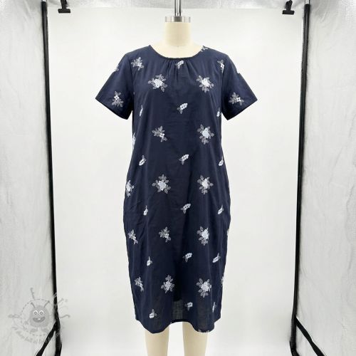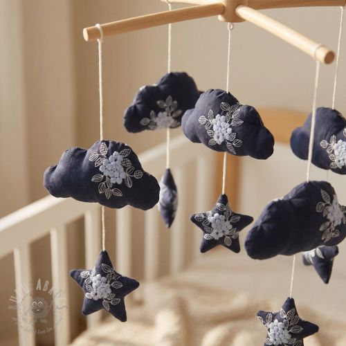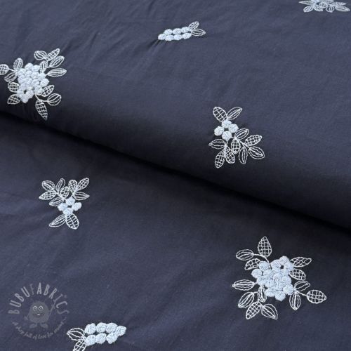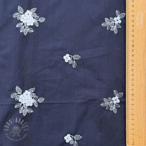 Țesătură din bumbac VOILE EMBROIDERY Flowers navy
